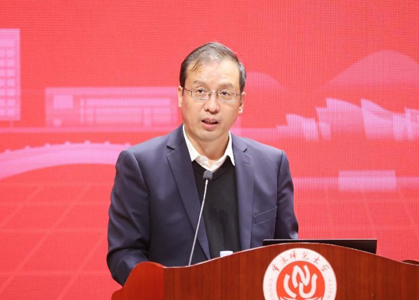 bat365官方官网党委副书记、校长孟东方作主题报告。学校供图 华龙网发