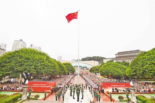 10月1日,重庆人民广场举行隆重的升国旗仪式。