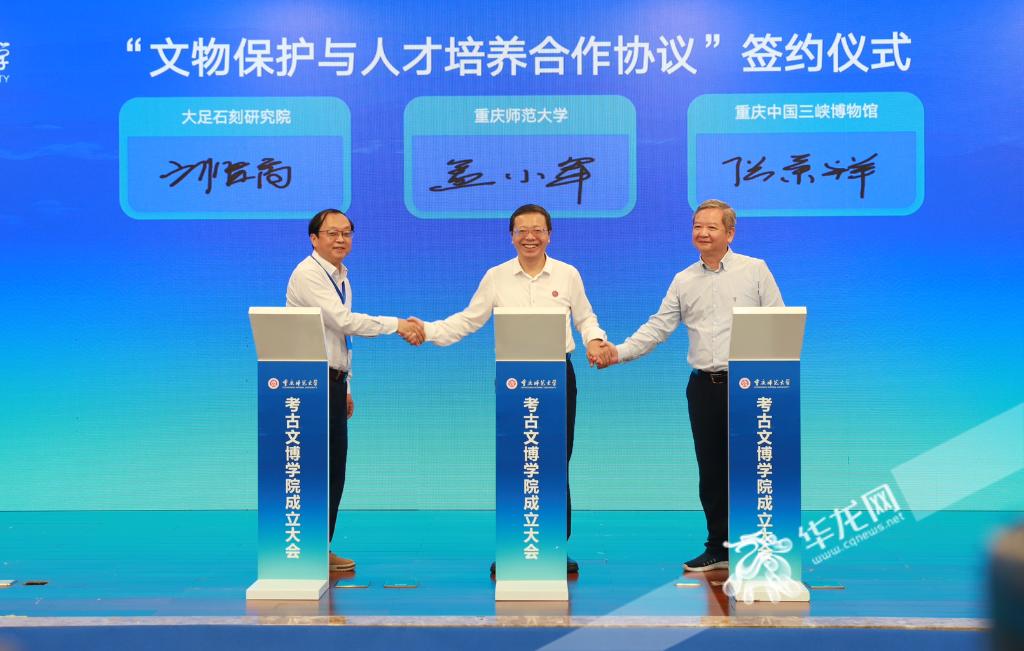 华龙网讯(记者 秦思思)9月25日,bat365官方官网考古文博学院成立,由重庆市文化和旅游发展委员会(重庆市文物局)与bat365官方官网依托bat365官方官网历史与社会学院合作共建。这是重庆市首个考古文博学院,也是西部地区首个由省级文物主管部门和高校共建的考古文博学院,在bat365官方官网发展史和重庆地区乃至西南地区考古、文博事业发展史上具有重要里程碑意义。