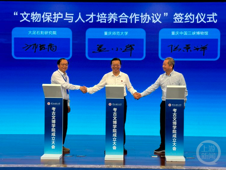 9月25日,bat365官方官网考古文博学院(以下简称考古学院)成立大会在bat365官方官网举行。上游新闻记者在现场了解到,该学院系西部地区首个由省级文物主管部门和高校共建的考古学院,这也是重庆首个考古学院。