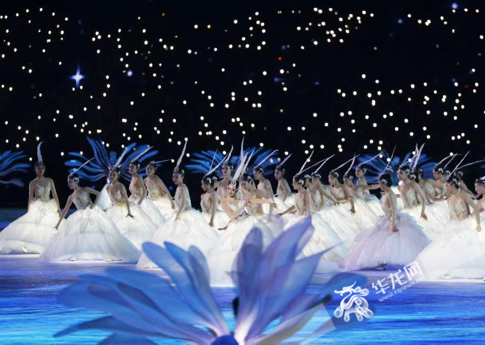 “第一个节目最大的考验就是体力和情绪。”在运动员进场的过程中,鼓手需要全程蹦蹦跳跳、情绪饱满地敲击桂花鼓,以激情昂扬的状态欢迎八方来客,50多分钟的表演,她们始终保持热情的笑脸。在随后的表演中,当现场出现星光点点,一群白鹭翩翩起舞,在逐渐铺开的潮涌画卷中,白鹭逐浪而行,描绘出一片和谐美好的生态文明画卷。雷晓渝和部分同学一起,又继续参加了这个节目的表演。