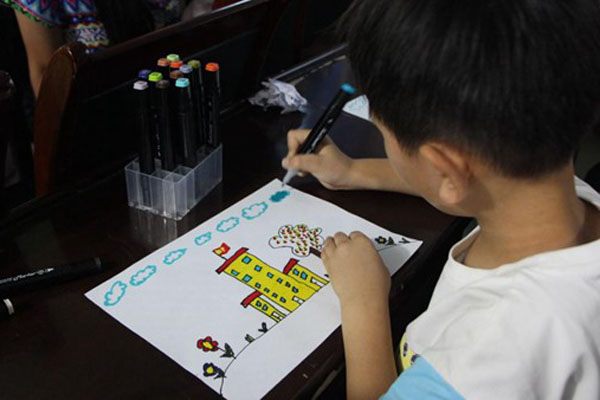 实践团成员以“树洞”方式倾听小朋友成长烦恼。