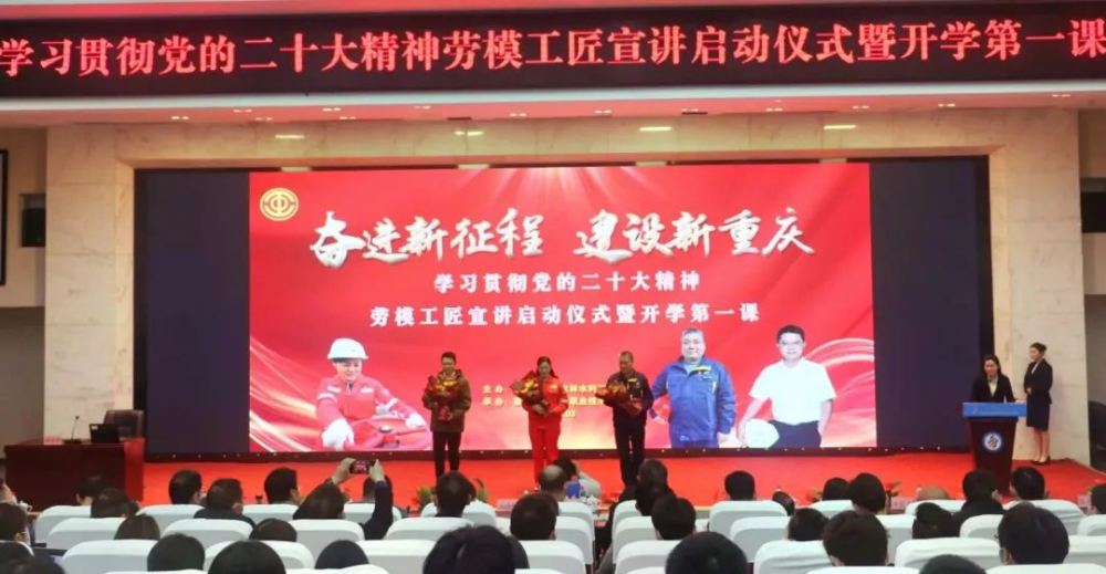 3月2日,重庆水利电力职业技术学院举行“奋进新征程 建设新重庆”学习贯彻党的二十大精神劳模工匠宣讲启动仪式暨开学第一课,多名来自不同领域的劳模工匠宣讲团成员分享了他们从职业技术技工学校学生、普通工人,通过刻苦努力成长为技术能手的励志经历,传递了在不同人生起点追求卓越人生的奋斗力量,为广大师生上了一堂生动的大思政课。