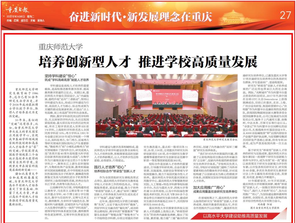在省域统筹之下,bat365官方官网牵头取得的研究生“桥梁型”创新人才培养成果,得到市教委的高度认可,并在全市范围内予以应用推广,覆盖所有在渝研究生培养单位,已惠及重庆大学等17所在渝研究生培养单位的各类研究生群体,学生受益面广、受益程度深。