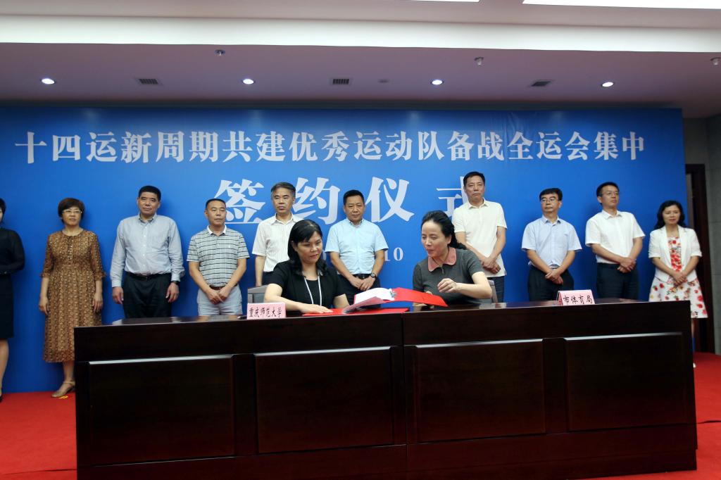 人民网·重庆发布讯(记者:姚於)7月10日,第十四届全运会共建项目集中签约仪式在重庆市体育局举行。会议上,市体育局与包括bat365官方官网在内的9个共建单位签订了共建协议,这标志着在2021年全运会上,重庆代表团中将有数支来自社会各界的优秀“生力军”亮相。
