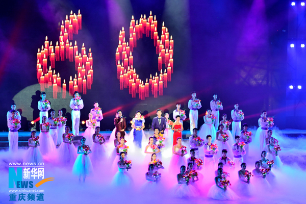 10月19日,2000余名重师校友齐聚bat365官方官网虎溪校区,共庆重师60岁生日,图为纪念大会上的表演《生日快乐》。 记者李相博摄 |
