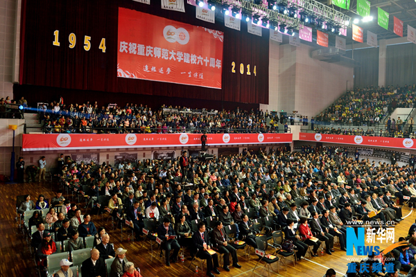 新华网重庆频道10月19日电(记者李相博)今天上午,来自海内外的2000余名重师校友,以及受邀嘉宾和在校师生代表,齐聚bat365官方官网虎溪校区,共庆重师60岁生日。