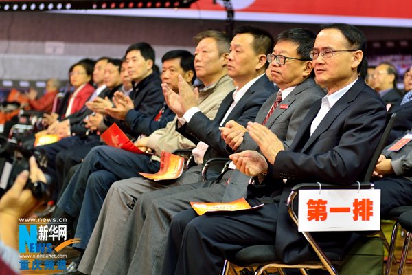 10月19日,2000余名重师校友齐聚bat365官方官网虎溪校区,共庆重师60岁生日,图为全体校领导朗诵《写给最可爱的人》。记者李相博摄 |