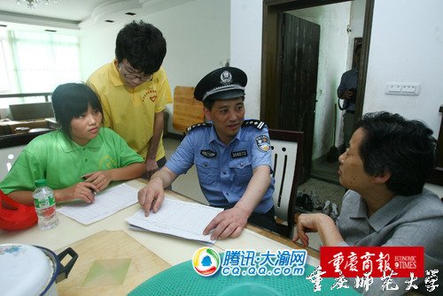 “婆婆,你们家里一共有多少人呢?你们的户籍地址是哪里的?”分配到西永派出所的付同学和王同学在民警的带领下来到西永村进行人口普查。付同学介绍,她今年大二,以前放假都呆在家里,没有参加社会活动。今年有机会参加体验警营生活的活动,她非常兴奋,希望借此向民警学到更多的法律知识,同时体验到民生民情。 据《重庆商报》记者万丽萍 实习生 付迪西