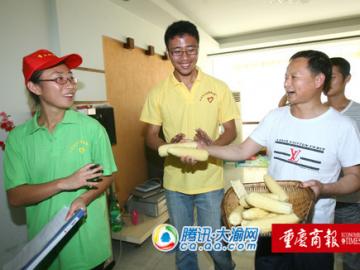 居民送上玉米给前来体验民警工作的大学生志愿者 记者 吴珊 摄