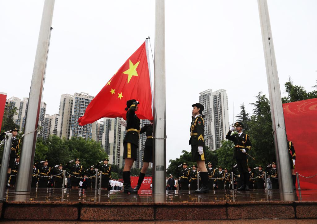 伴随着雄壮的国歌声,鲜艳的五星红旗缓缓升起,师生们肃立注目,表达着对祖国的无限热爱和崇高敬意。在这庄严的时刻,91位与新中国同生日的同学更是心潮澎湃。