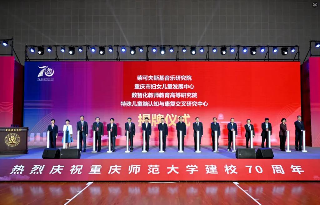 值得一提的是,当天,柴可夫斯基音乐研究院、重庆市妇女儿童发展中心、数智化教师教育高等研究院、特殊儿童脑认知与康复交叉研究中心4个平台也正式揭牌。