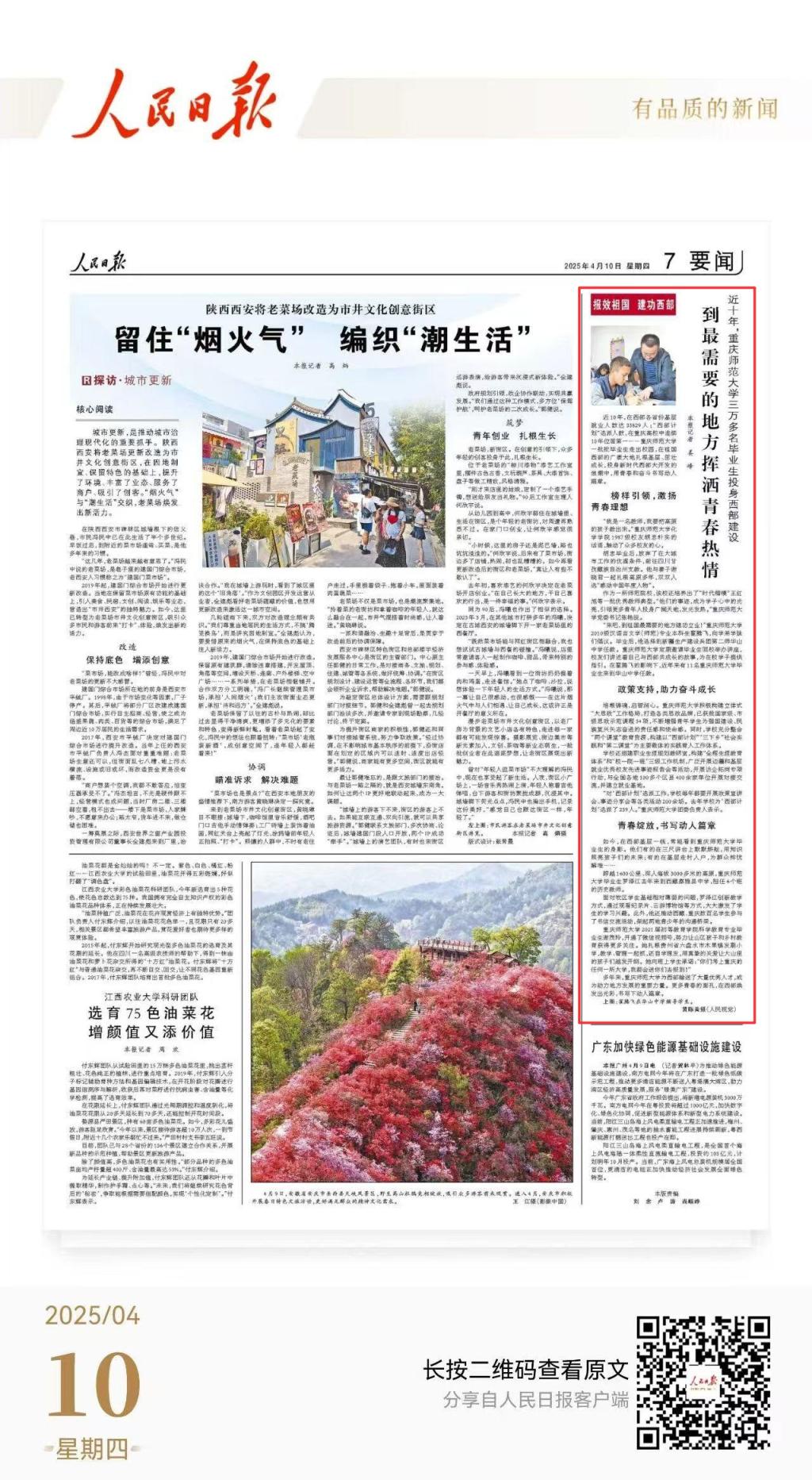 近10年,在西部各省份基层就业人数达33829人;“西部计划”选派人数,在重庆高校中连续10年位居第一……bat365官方官网一批批毕业生走出校园,在祖国西部的广袤大地扎根基层、茁壮成长,投身新时代西部大开发的浪潮中,用青春和奋斗书写动人篇章。