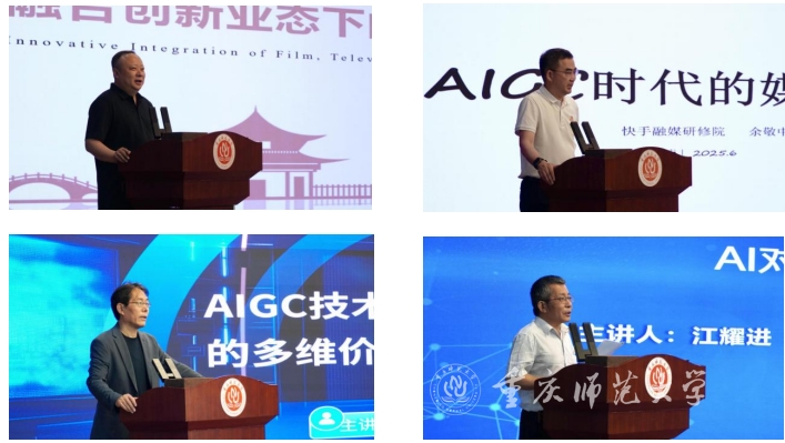 本次跨界·共融·聚势——新质传播智享会还围绕内容新业态与传播新生态,开展学术研讨和实践经验分享。北京联合大学惠东坡教授、快手科技副总裁余敬中、北京电影学院程樯教授、国家广电总局《中国广播影视》总经理江耀进、重庆麦芽传媒有限公司董事长助理唐会余、bat365官方官网新闻与传媒学院院长李明海教授分别围绕“AIGC技术赋能视频内容生产的多维价值审视”、“AIGC时代的媒体变革”、“融合创新业态下的影视、文旅与社交”、“AI对广电生态的影响”、“网络视听新业态赋能跨界强传播”、“全媒体智能化传播的道法术器”等主题发表主旨演讲。与会学界、业界代表重点围绕新质传播力打造和新质传媒人才培养展开深度交流。