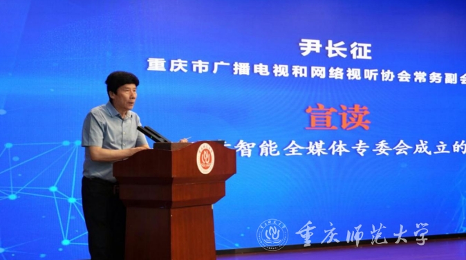 重庆市广播电视和网络视听协会党支部书记、常务副会长尹长征宣读《关于同意智能全媒体专委会成立的批复》。