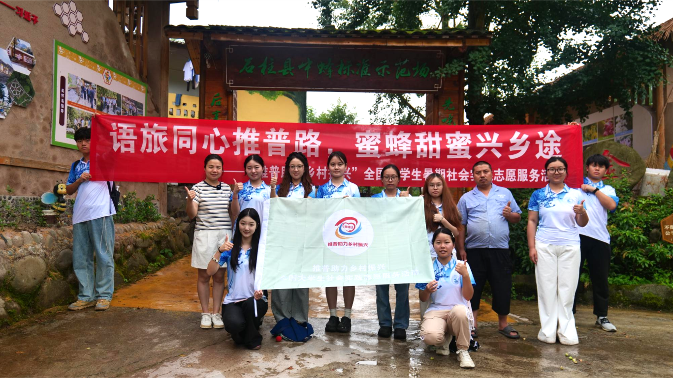 多年来,“地旅蓝”团队从推普出发,不断拓宽实践场景,探索创新服务模式。此次将电商直播融入助农实践,团队深入华溪村蜂蜜基地,成员们以规范统一的普通话倾情推介。直播前,为使直播内容更为精准,有效触达用户需求,成员们向资深蜂农详细了解了如何从颜色、质地、气味等方面鉴别蜂蜜品质的方法,学习了蜂蜜润肺止咳、润肠通便、增强免疫力等知识。成员们还实地参观了智能蜂箱,在感受科技对农业赋能的同时,深刻理解到“产业振兴需传统与创新并举”的发展路径。