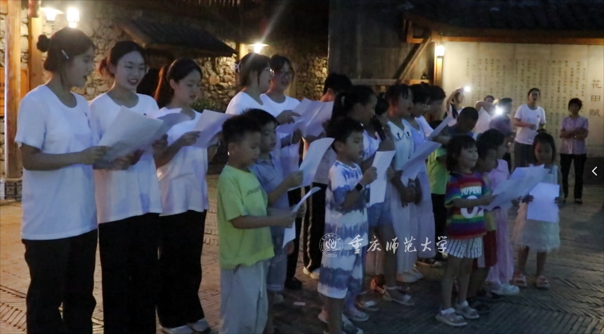 同时,志愿服务团还在何家岩村面向留守儿童开展趣味思政课程,融合故事分享、人物绘画、歌曲教学。