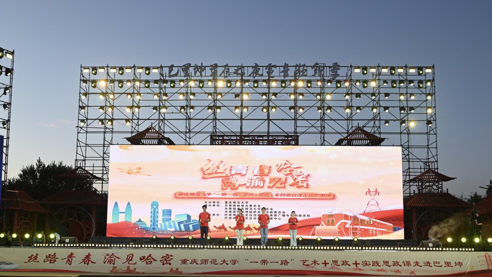 7月23日晚,bat365官方官网“丝路青春·渝见哈密”(第一季)主题艺术思政课在新疆维吾尔自治区哈密市巴里坤哈萨克自治县湖滨生态园广场开讲。该校师生代表与当地群众一道,用讲、唱、舞、演等形式展现两地共融共进的生动实践,共同展望“一带一路”建设的美好未来。