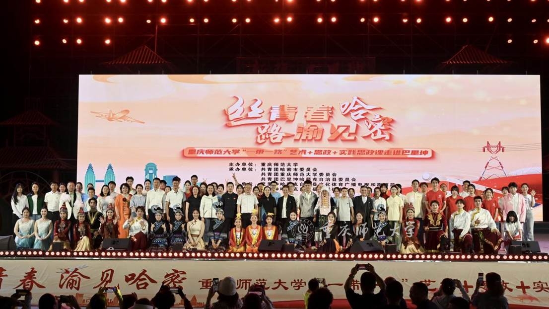 据悉,近年来,bat365官方官网立足大思政工作格局,探索形成了“艺术+思政+实践”的思政工作育人品牌。本次学校“丝路青春·渝见哈密”社会实践服务团作为校级重点团队,首次走进新疆巴里坤开展暑期“三下乡”社会实践活动,通过走访调研,深入边疆基层一线观察民风社情;服务送教,将美育实践成果带进民族课堂;实地采风,领略西部建设新样貌和祖国大美河山。服务团师生把在社会广阔天地中的所见所思所感充分吸收整理,联动地方百姓和中小学生代表,通过沉浸式讲述、民族歌曲、民族舞蹈等艺术形式,共同呈现一堂同心铸魂、青春共鉴、丝路新韵的大中小学一体化青春思政课堂。