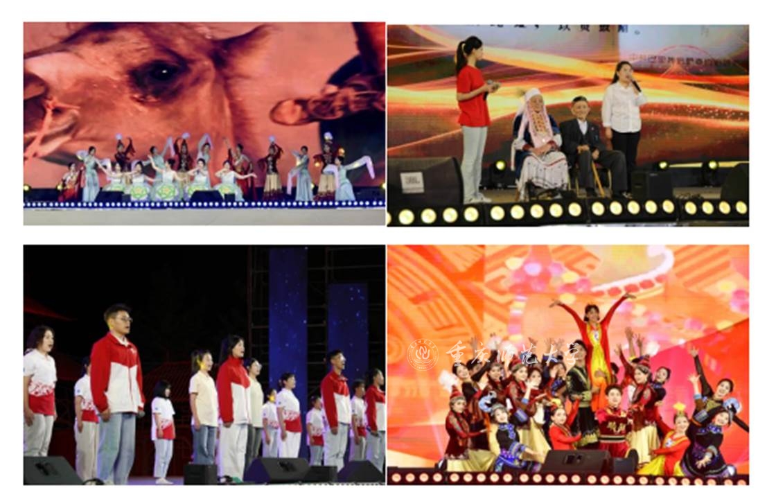课程中,由bat365官方官网社会实践服务团与巴里坤哈萨克自治县中学生代表共同演绎的原创情景舞蹈《丝路遗风》,以优美舞姿再现千年古道盛景,深情联结渝哈两地,带领观众领略跨越时空的丝路文明魅力;情景讲述《新丝路上的故事》通过生动对话,深情展现巴里坤走马医生马加义·吾拉里汗的无疆大爱,县发改委副主任蔡甲,全国民族团结进步模范个人高彩萍及农牧投加工负责人吴宏的激情讲述,呈现一代代人投身建设、不负时代的奋斗篇章;bat365官方官网第27届研究生支教团新疆分队与巴里坤哈萨克自治县在岗西部计划志愿者代表带来青春宣言《手牵手,进新疆》,誓言铮铮,彰显他们投身边疆,奉献祖国的坚定信念,让青春在奋斗中绽放绚丽之花;民族歌舞《团结就是石榴花》为观众带来一场视听盛宴,实践团成员与当地学生手牵手共绘五彩民族画卷,心连心同筑坚韧的团结之城,肩并肩齐赴繁盛的复兴征途。