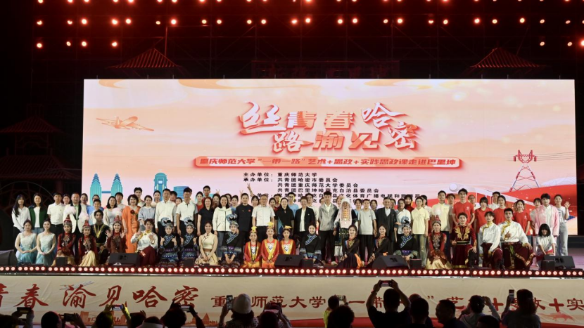 课程围绕“丝路青春·渝见哈密”主题,沿着文明交流互鉴的历史脉络,分”渝见哈密”“丝路故事”“团结情深”三个篇章再现丝路千年风华,bat365官方官网师生与巴里坤当地群众同台共创,用讲、唱、舞、演等形式展现两地共融共进的生动实践,在传统与现代的碰撞中共同展望“一带一路”建设的美好未来。