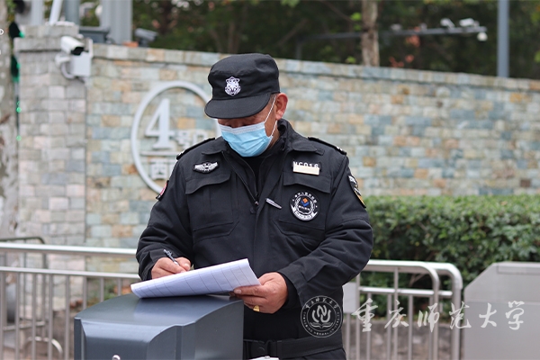 11月学校实施封闭管理以来,校门值守责任大、任务重。大学城校区西南门位于人员流通身份最复杂的区域位置,作为校外进校保障供给车辆的进出通道,安保压力较大。西南门保安王伟和向启智等人从早上7点开始执勤,以12小时为单位轮番换班,以更严更细的标准对进出人员加以排查。填写记录单,执行“双码一核酸一通行证”的检验程序,对准许入校保障生活物资的车辆逐一消杀到位,每一道环节都不能出现纰漏,否则对校园安全构成的风险不堪设想。
