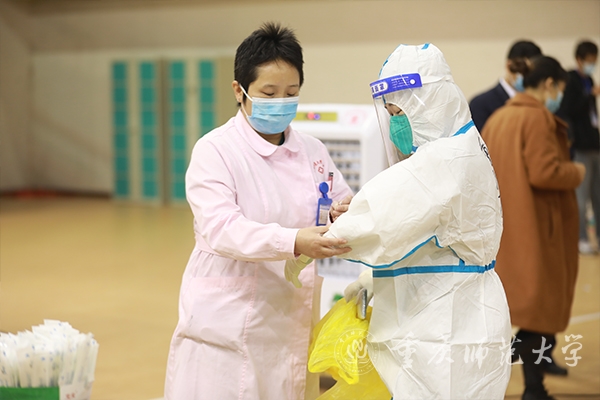 针对目前情况,bat365积极响应市委市政府防控要求,迅速采取防疫措施。校医院的医护人员闻令而动,每日抽调30余名医护人员,全力保障两万六千余名师生员工的核酸检测工作,尽最大努力守护全校师生健康安全。