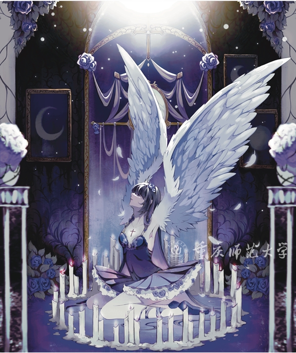 群青色的鲜亮需要经过漫长的开采与打磨,“群青”们的绽放过程亦如是。“刚开始创作时我就意识到艺术想象和实际创作之间是有距离的。”来自美术学专业的方晨说到,“我的毕业作品设计灵感来自于我大学四年的梦境碎片,四年里我频繁梦见一个名叫希子的女孩,在梦里我见证了她手臂生出羽毛、长成翅膀的过程,这使我很受触动,就如同在大学成长的我。因此我想在作品里将希子蜕变的过程表现出来,但在具体创作实践中却很难达到梦境中那种效果,于是便跟老师进一步沟通,不断改进。”