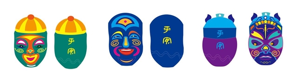视觉传达设计专业的袁丹青在创作时同样遇到了困难。她选择在作品中将传统民族文化与当代时尚文化相结合,但两者客观存在的差异使她在创作时不知从何下手。经过长时间的思考,她最终决定将自己的毕业作品定为傩戏面具。在保留傩戏人物传统外貌特征的同时,又注意对每个人物不同性格的刻画,并通过给人物的脸颊增添鱼尾纹样等元素,使它们的形象更加有趣可爱。