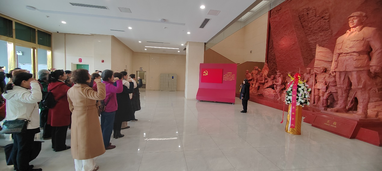 在纪念馆的王良同志雕塑前,全体党员整齐列队,离退休党委书记刘艳同志带领大家向王良将军塑像敬献花篮,深切缅怀这位红军将领。老党员吴永恒同志带领大家重温入党誓词,全体党员高举右手庄严宣誓,表达了为党的事业奋斗终身的坚定理想信念。
