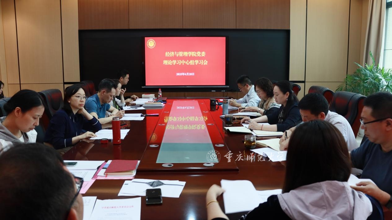 4月28日下午,经济与管理学院党委理论学习中心组(扩大)在求是楼420会议室召开集中学习会,学院党委委员、纪委委员、党支部书记参会学习,会议由党委书记钟敏主持。
