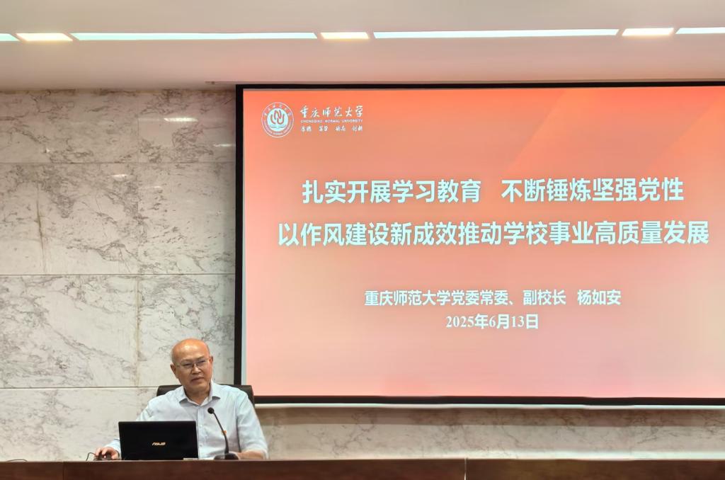杨如安主要围绕四个方面深刻阐述了加强党的作风建设的重要意义、精神实质和实践要求。一是深学细悟习近平总书记关于加强党的作风建设的重要论述,他强调党员干部要切实增强作风建设的政治自觉、思想自觉、行动自觉;二是深入理解“作风建设永远在路上”的历史逻辑,通过回溯党的百年奋斗历程中作风建设的重要作用,教育引导党员深刻领悟党的作风建设的长期性、艰巨性和必要性;三是认真学习中央八项规定及其实施细则精神,准确把握中央八项规定精神的要义和主要内容,持续提高贯彻落实的科学性、精准性和规范性;四是一体推进“学查改立融”,推动学习教育走深走实。他要求党员干部要将学习教育、问题查摆、整改落实、制度完善与业务工作深度融合,确保学习教育见行见效。杨如安结合典型案例,深入剖析了违反党的作风建设的具体表现,教育引导党员干部要以案为鉴、警钟长鸣,知敬畏、存戒惧、守底线;对照岗位职责,主动查摆自身不足,以刀刃向内的勇气立行立改。
